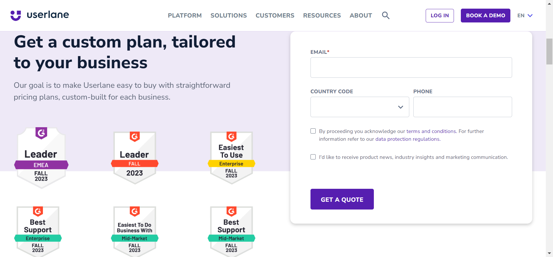 Userlane’s pricing plan is structured in a customizable pattern. This means you need to get a custom quote to know the plan that fits your brand’s purpose based on the level of your SaaS and the number of acquired customers.