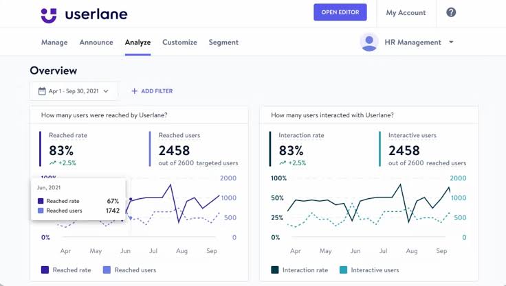 • Userlane is a no-code digital adoption platform used to measure how employees use applications, identify areas for improvement, and offer real-time guidance directly within any application. In addition, it allows you to get a real-time view of digital transformation progress in your organization. You can now delve deeper into user behaviors across different applications and analyze engagement levels so you can optimize user experiences.
