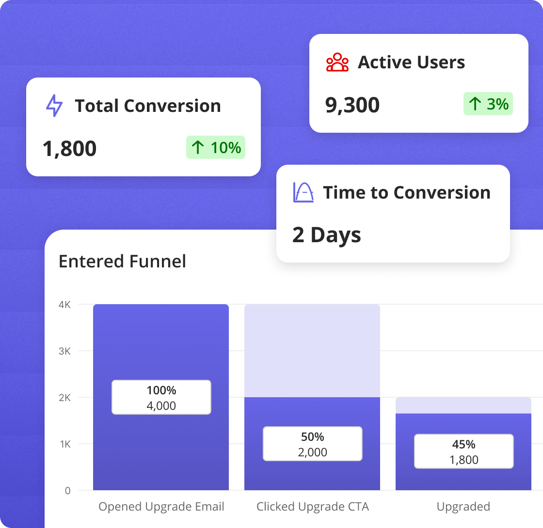 Measure the true impact of your funnels. Track end-to-end completion rates, time-to-convert, and prove the ROI of every campaign.