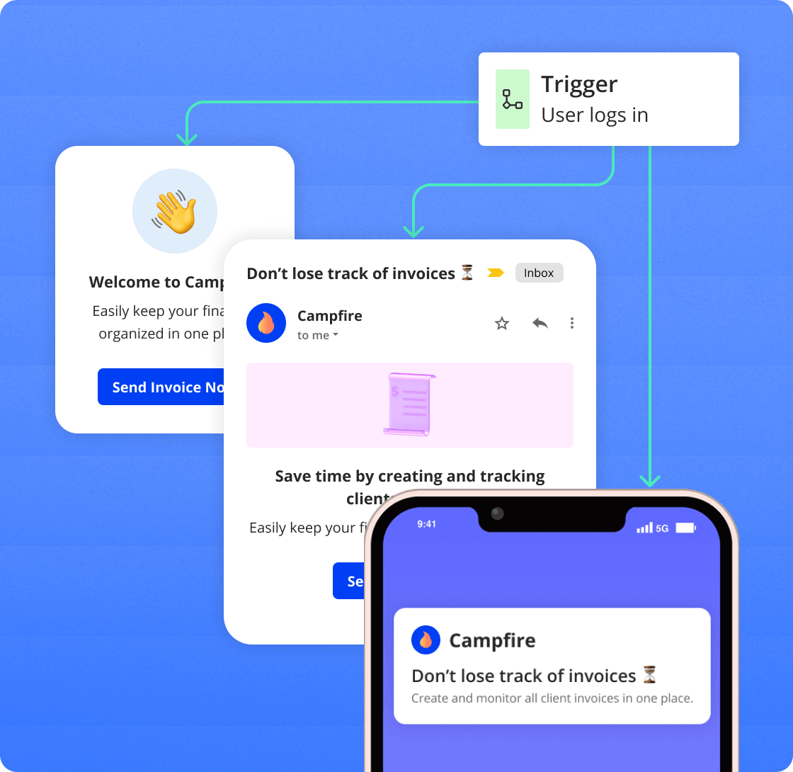 Unify emails, in-app, and mobile messaging into one seamless communication experience across the user journey.