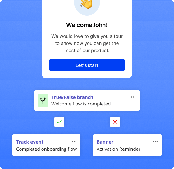 Create personalized paths for every user. Tailor their journey based on the actions they take, the properties they have, or how much time has passed.