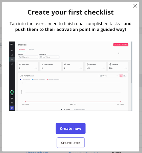 For example, an email might prompt a user to start a new project. Once they click into the app, an interactive walkthrough can then guide them step-by-step through the process directly within the product interface.