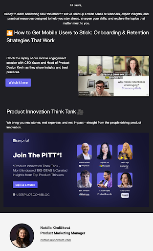 An email might announce a new feature or share “pro tips” for power users. Once they click through, in-app tutorials, tooltips, or feature spotlights can guide them on how to use it right then and there.