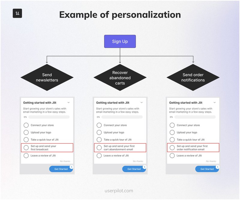 For a more effective onboarding process, further personalize checklists for different user segments to guide users toward their goals (example discussed above).