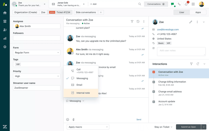 - Team collaboration tools for assigning tasks, adding private notes, showing who’s seeing or replying to a message, and building AI-powered summaries.