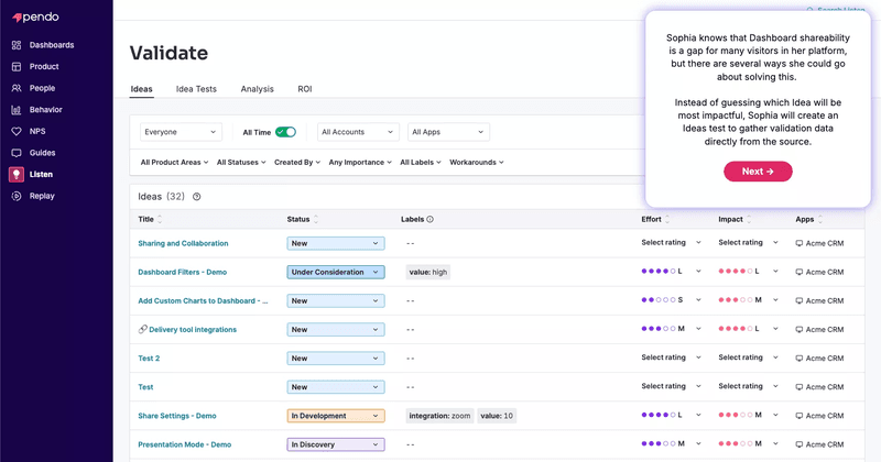 - Flow experimentation. Conduct head-to-head or controlled A/B tests or controlled multivariate tests to identify which product tour leads to more engagement or conversions.