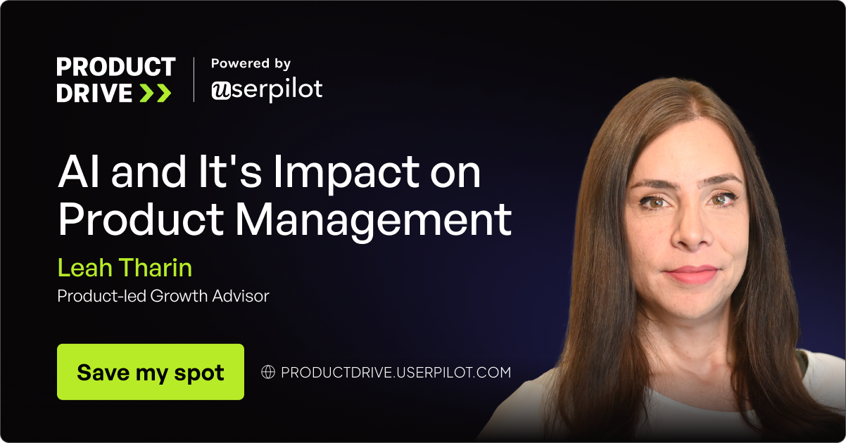Register for Product Drive to join Leah Tharin and other experts live and be part of the conversation that’s shaping the future of AI-powered product management. The participation is free, but the seats are limited. Save your spot fast!