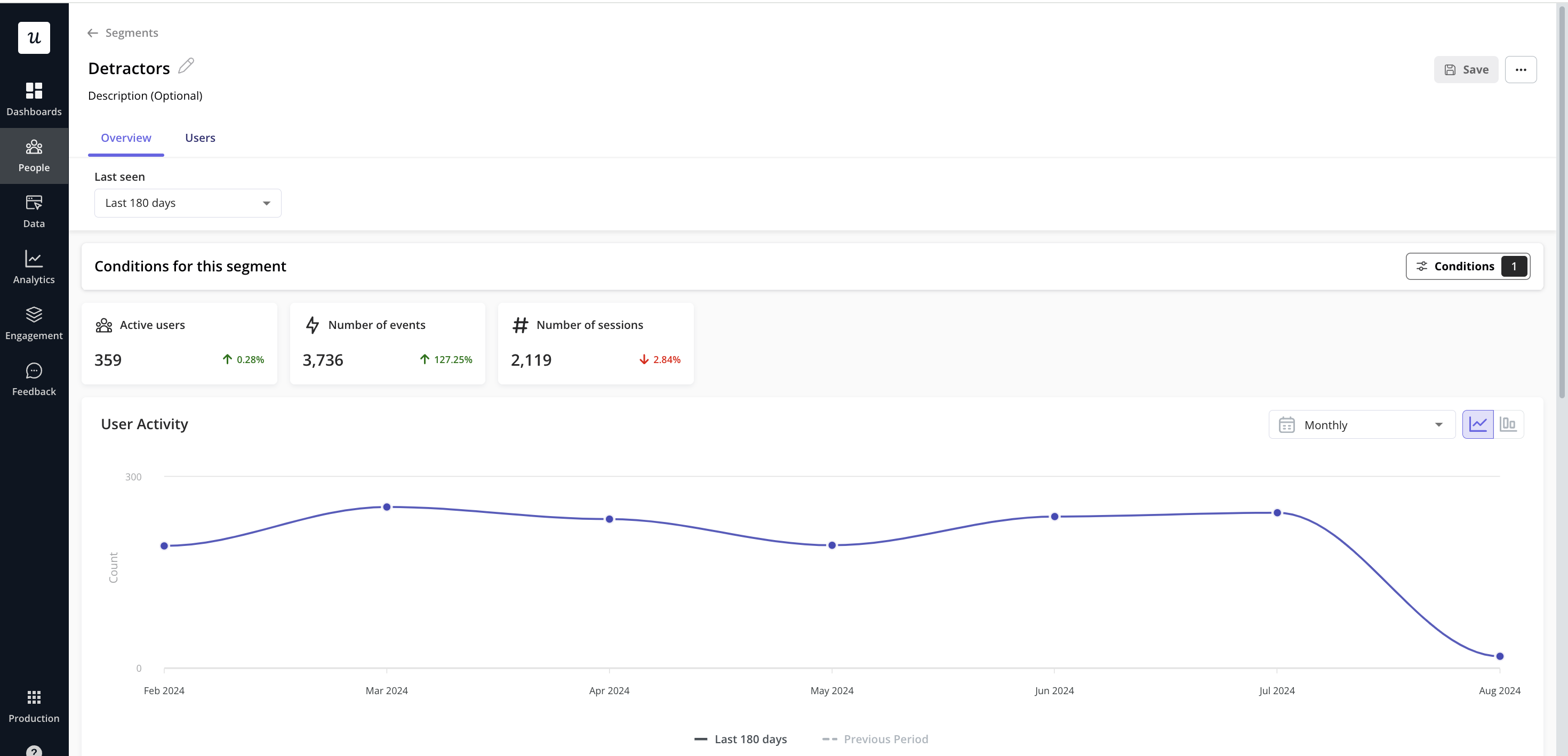 For example, you can create a segment of detractors and study them thoroughly to understand if there is a pattern among them.