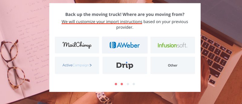 ConvertKit, an email marketing tool for creatives, makes sure their new users get what they want ASAP, by asking them what they want to accomplish in the welcome screen (do read our post about welcome screens btw. – you will need it to implement personalization in your SaaS!)