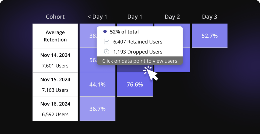 Group users by behaviors and track how segments perform over time to improve retention and understand product stickiness.