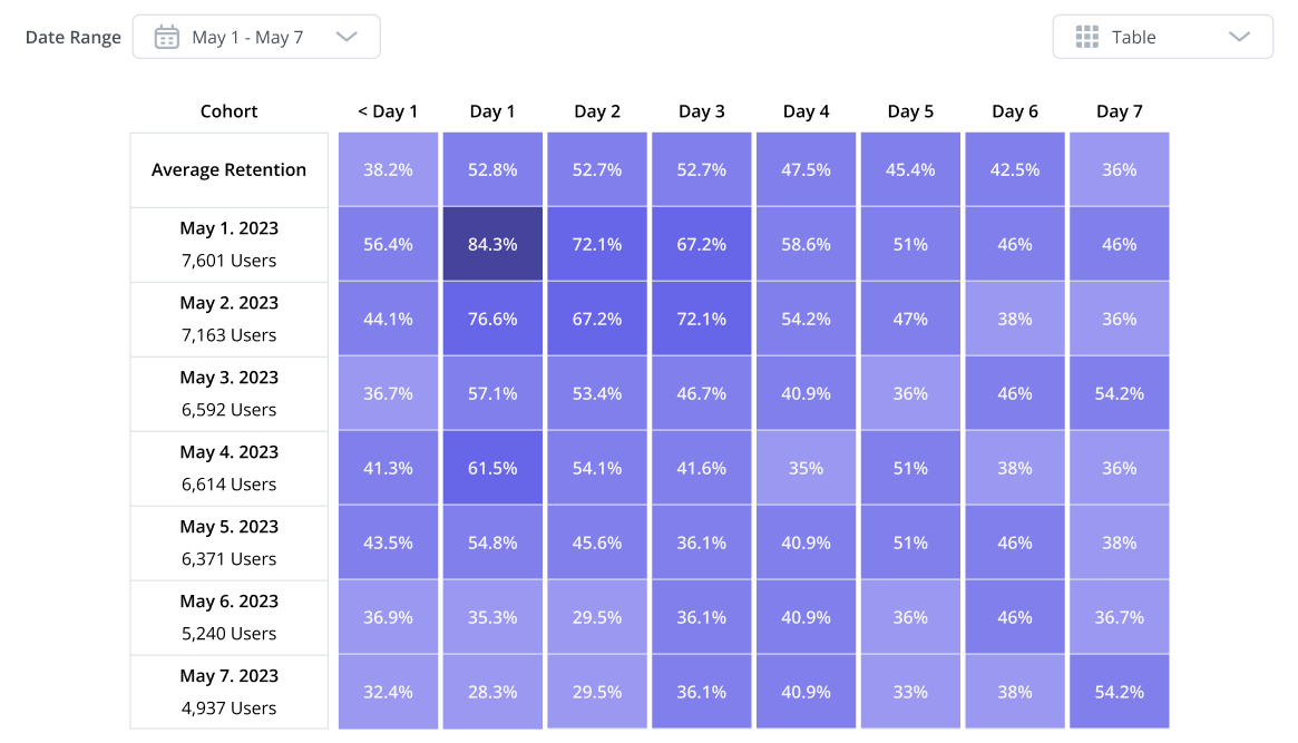 - Cohort analysis: Analyze retention trends using cohort tables. This functionality will be available in Q4 of 2023.