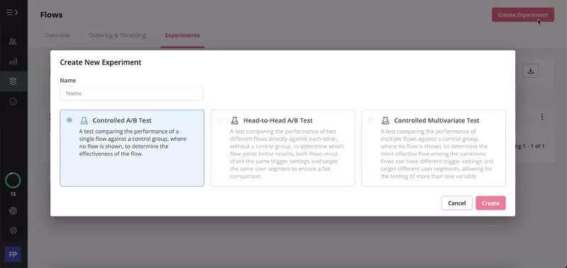 Want to start testing different in-app experience flows to improve retention? Get a Userpilot demo and run A/B tests with one click.