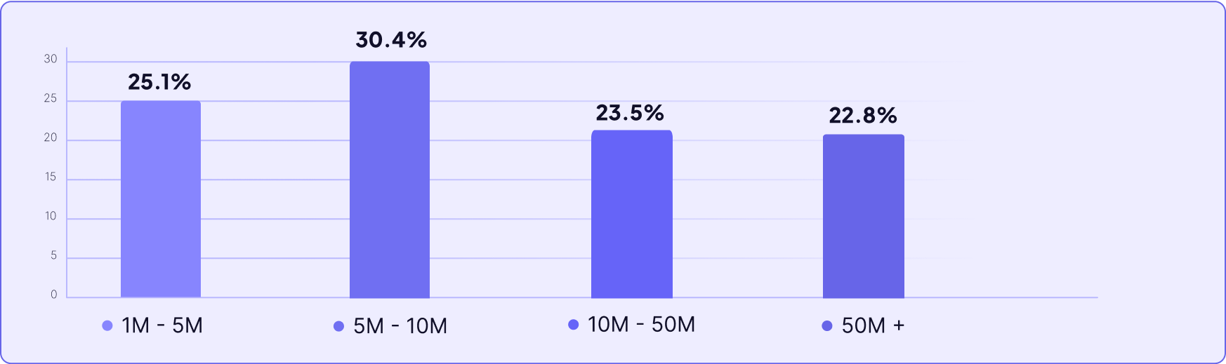 There’s no direct correlation between company size and time to value – in fact, the time-to-value is shortest in both the smallest – and the largest companies.
