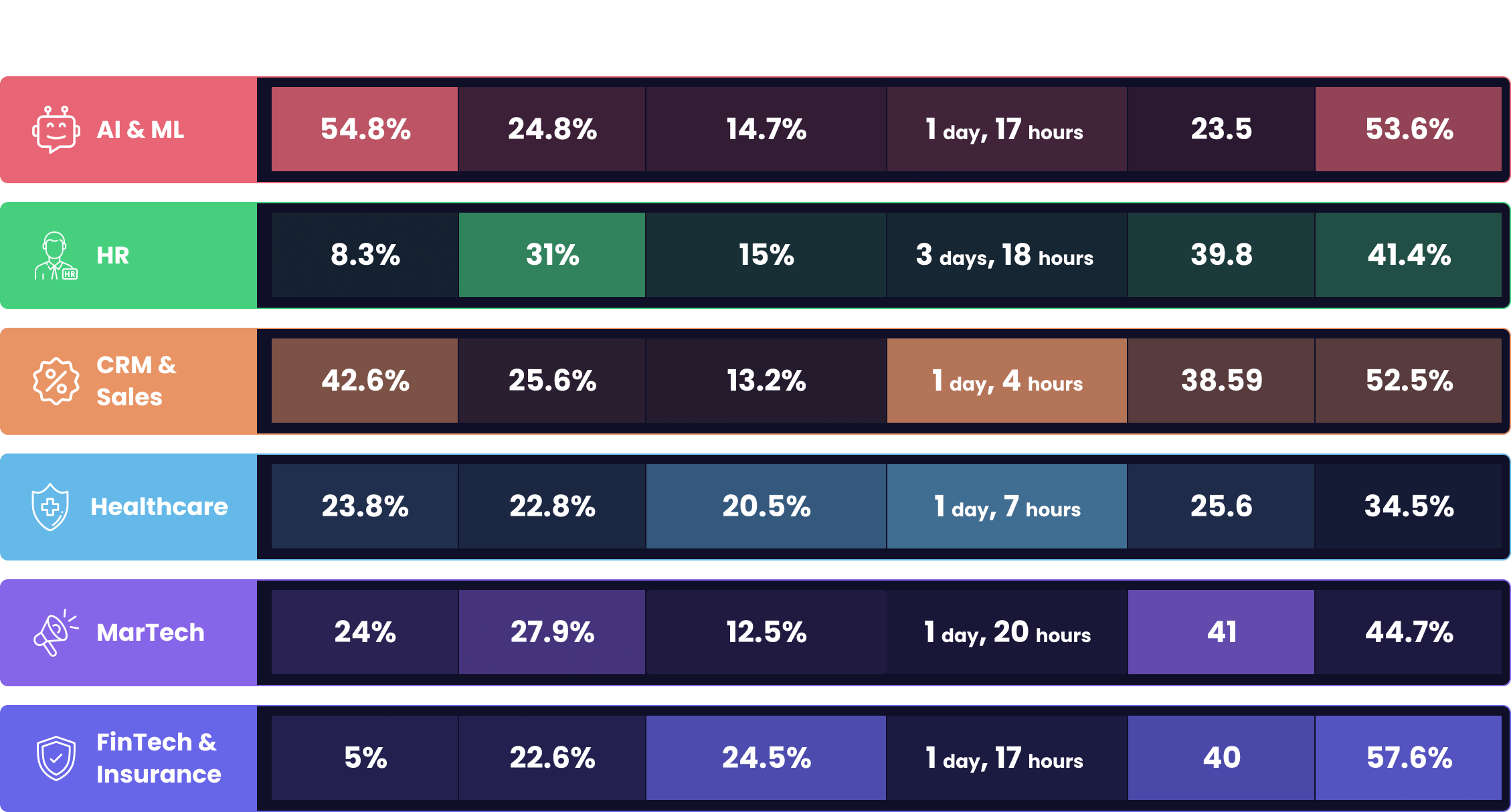 Compare your performance on top 6 product metrics benchmarks from 547 SaaS companies across 7 industries