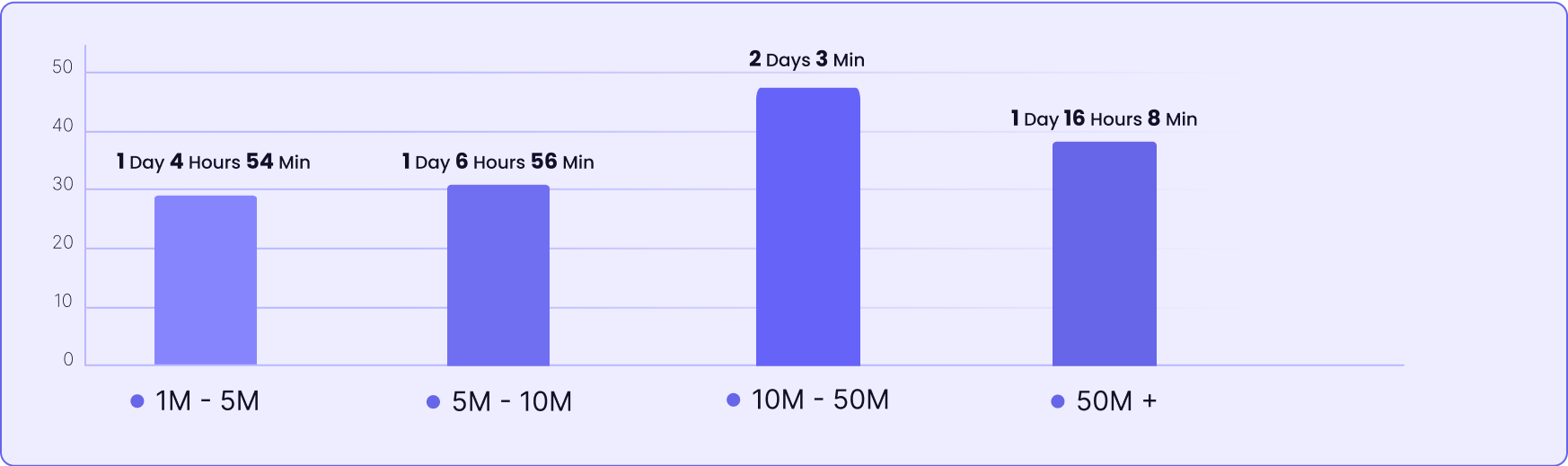 We analyzed the same 62 companies as in our activation rate study to provide a detailed view of how long it typically takes for users to reach their first value moment after starting to use the products. The data was taken from Userpilot’s user activation dashboard again.