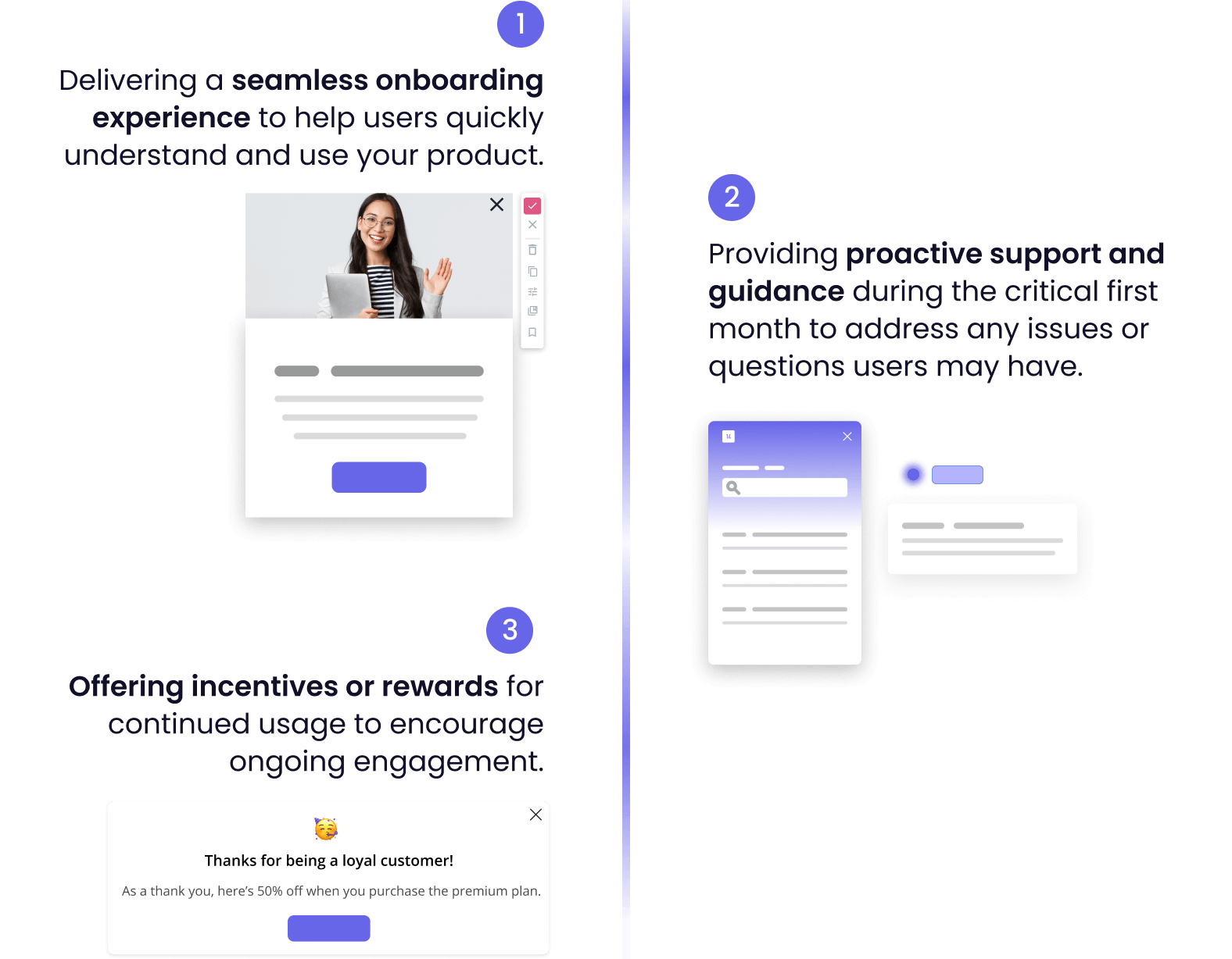Now let’s see what you can do to get similar results. To improve month 1 retention rate, focus on: