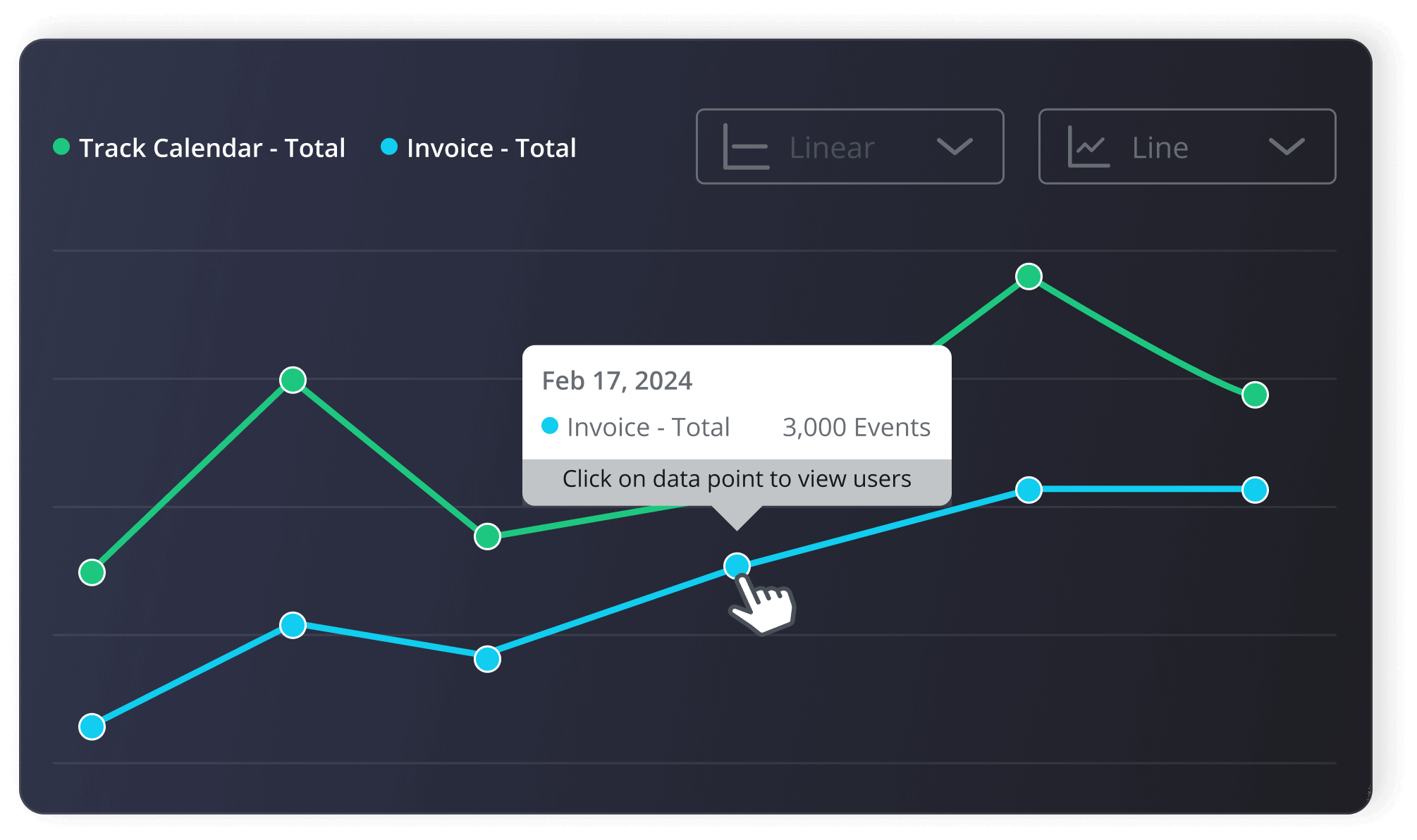 Compare the usage of different features, track daily/weekly/monthly active users, and spot usage anomalies.