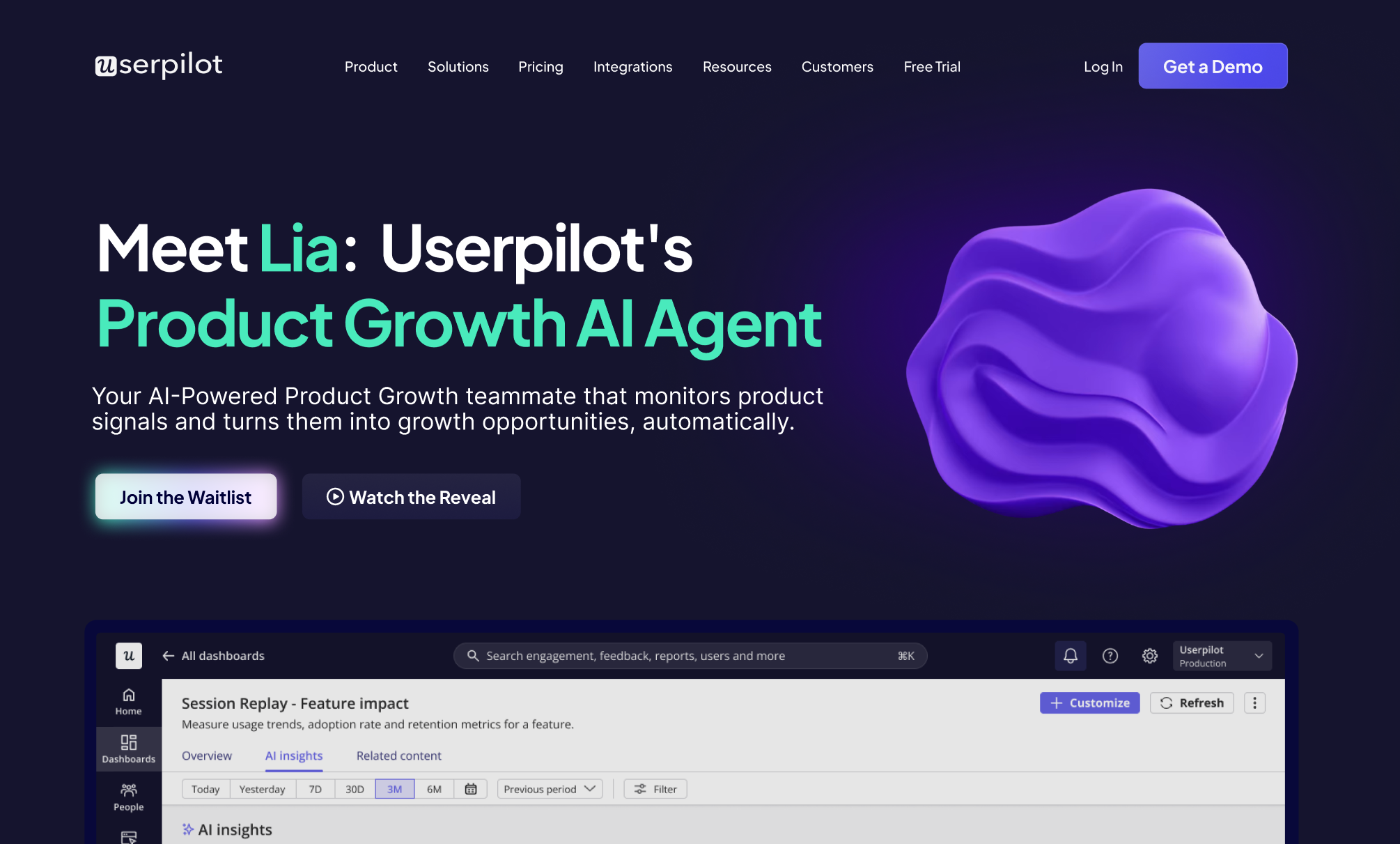 - Userpilot: Best for product teams needing no-code in-app guidance, user onboarding, omnichannel customer engagement, and product analytics in one platform.