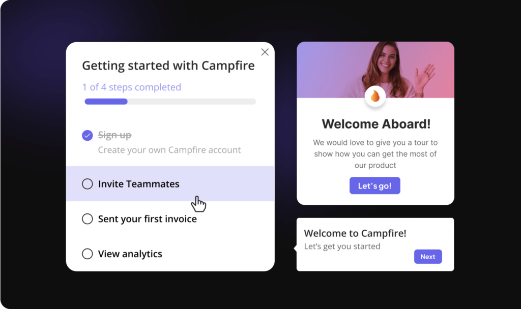 Delight new users with a personalized onboarding experience and allow them to discover value quickly within your product — no coding required.